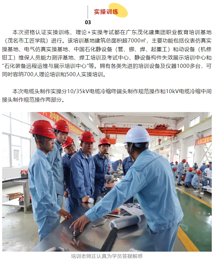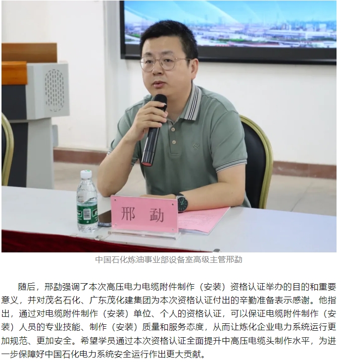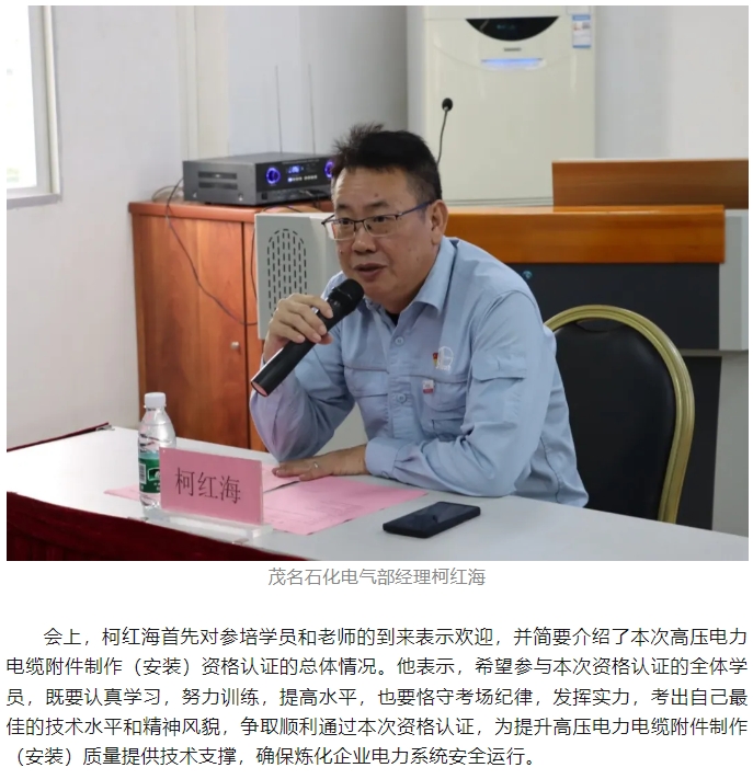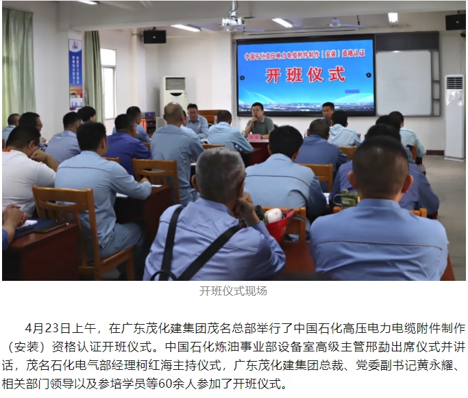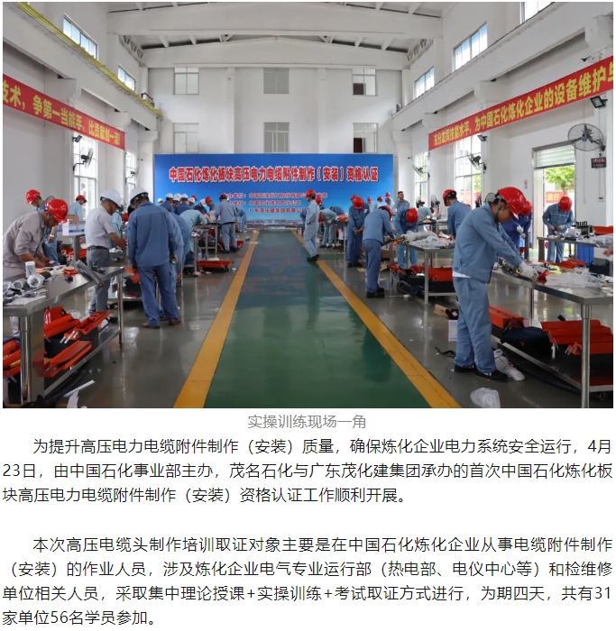 首次中國石化煉化闆塊高壓電力電纜附件制作(安裝)資格認證在茂名順利舉行