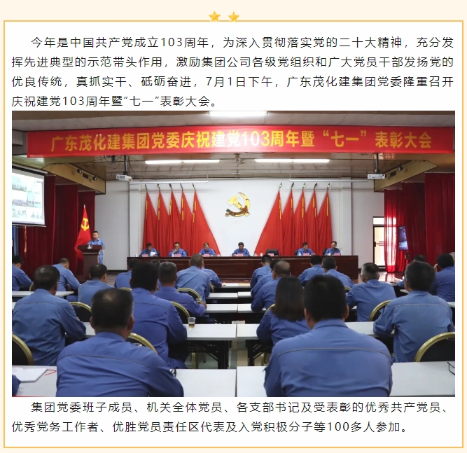 廣東茂化建集團黨委召開慶祝中國共産黨成立🙂‍↕️103周年暨“七一”表彰大會