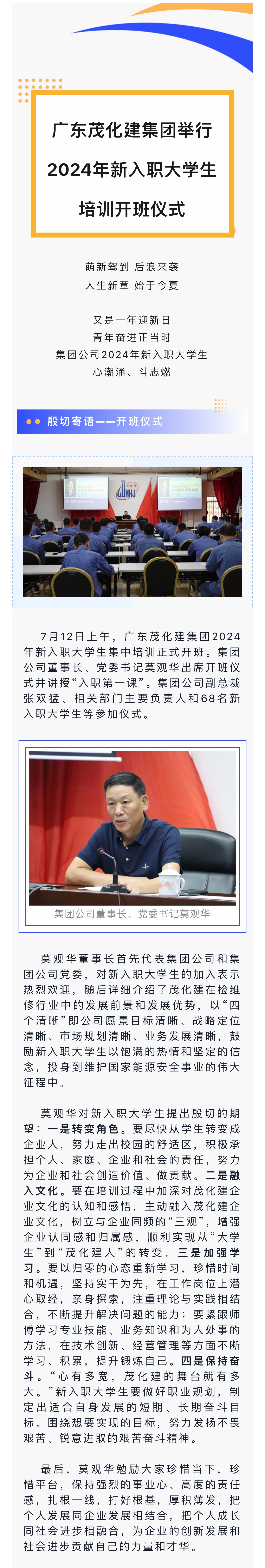 廣東茂化建集團舉行2024年新入職大學生培訓開班👀儀~式