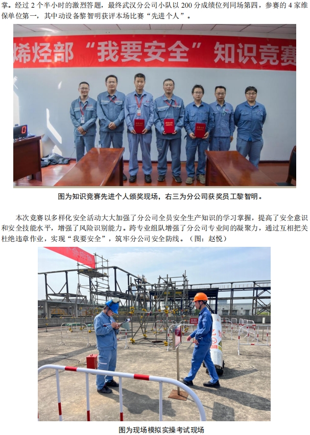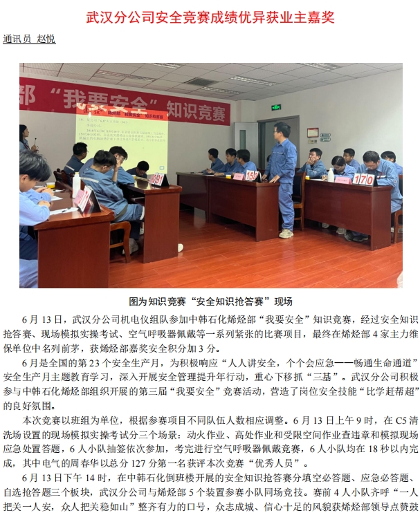 武漢分公司安全競賽成績優異獲業主嘉獎