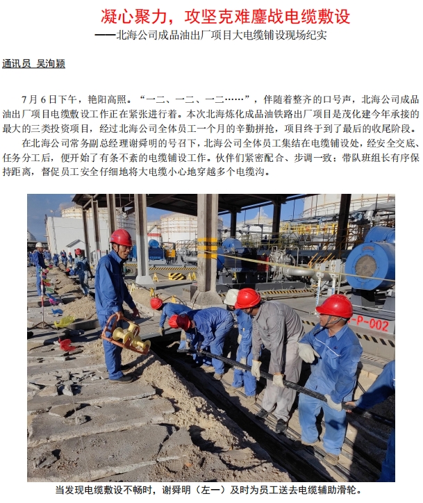 北海公司成品油出廠項目大電纜鋪設現場紀實⛹🏻‍♂️