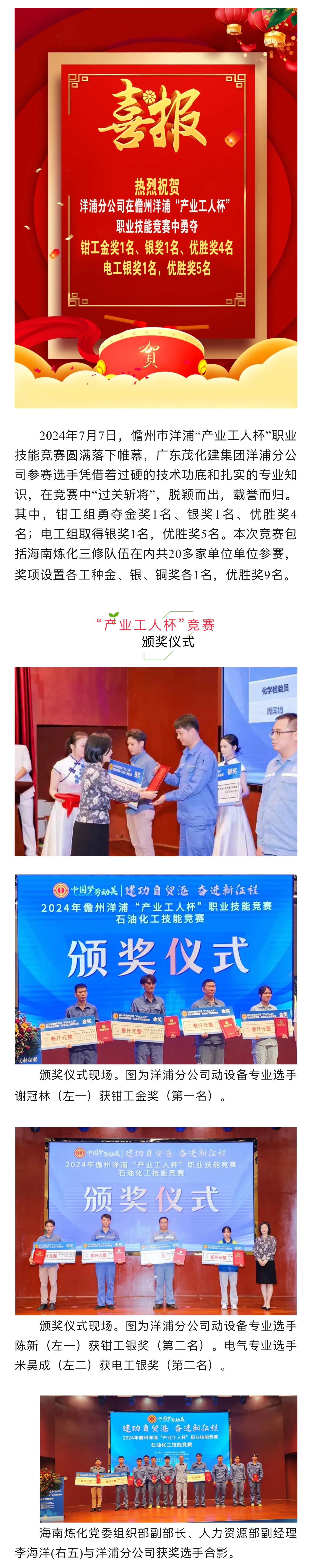 喜報:“産業工人杯”技能競賽|洋浦分公司滿載而歸