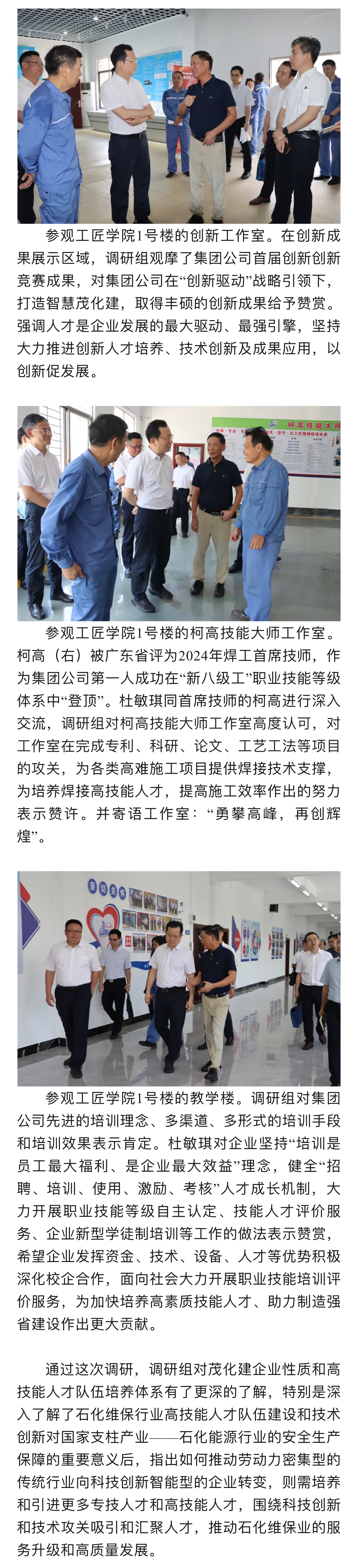 廣東省人社廳到集團公司調研高技能人才隊伍建設工作